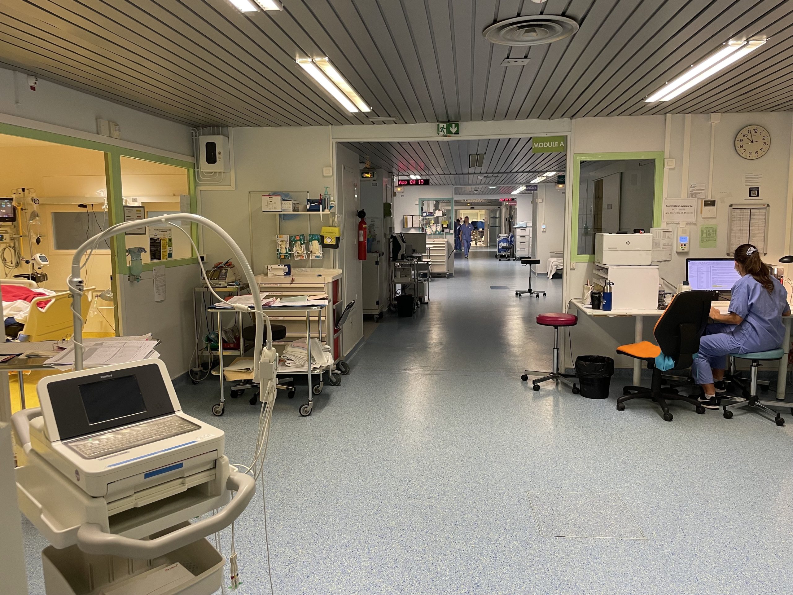 Le service de réanimation se situe au 1er étage, couloir E