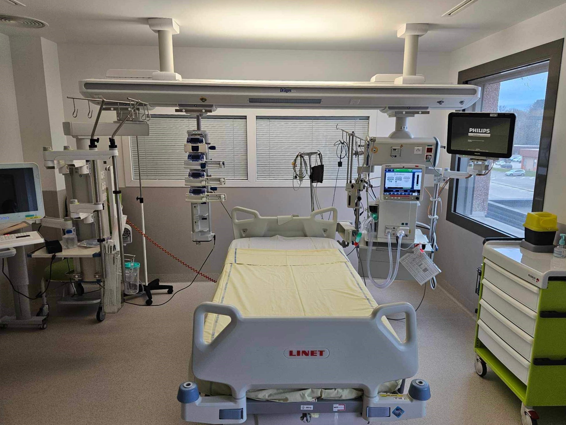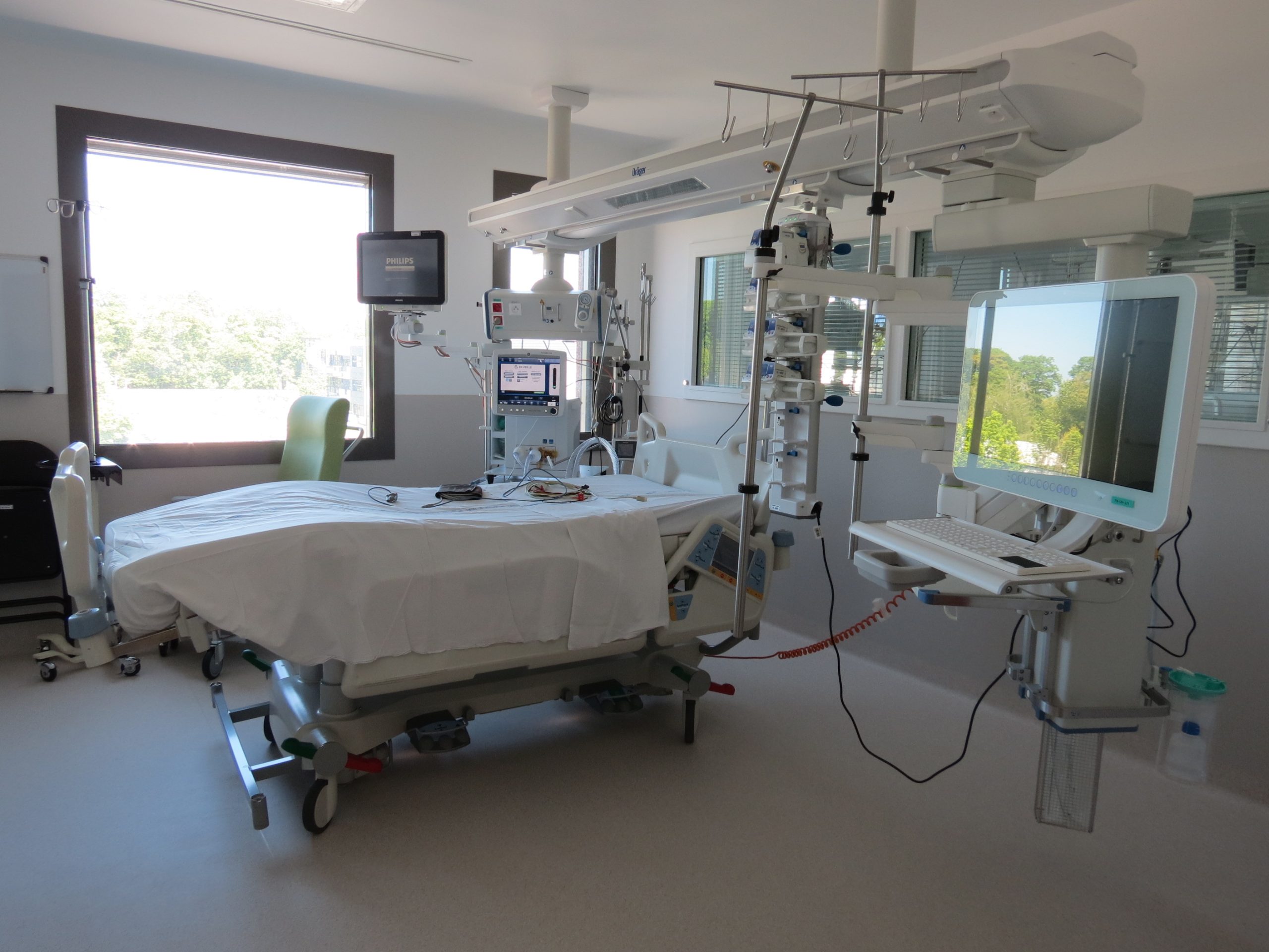 Les chambres sont équipées de matériels qui permettent la surveillance et la prise en charge des urgences vitales et des défaillances d’organes respiratoires, hémodynamiques ou rénales.