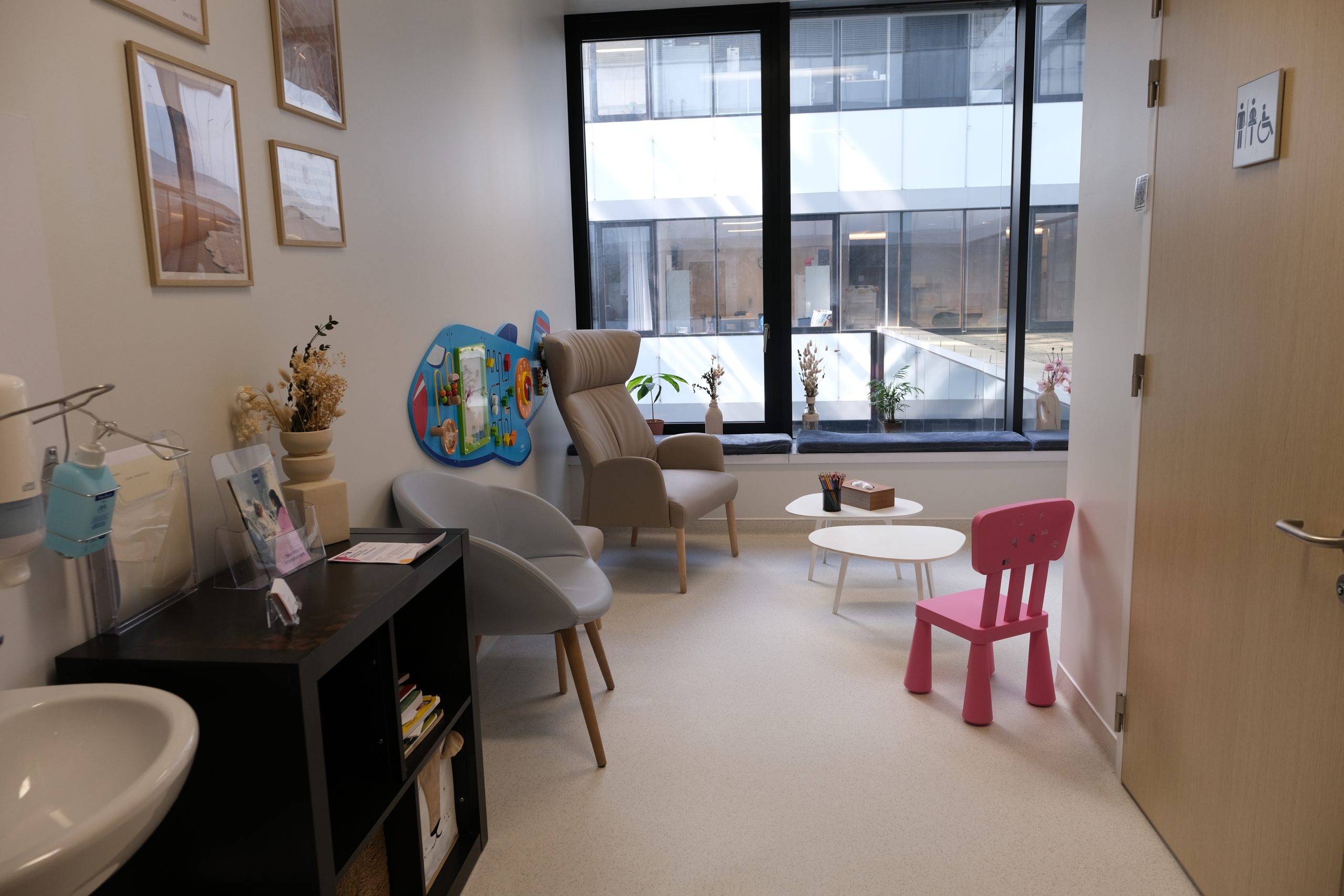 Pour respecter l'intimité des patients et le bon fonctionnement du service, il n'est pas possible d'attendre dans le couloir qui donne sur les chambres. Une salle des familles est à votre disposition.